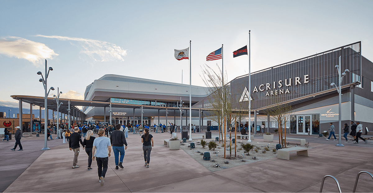 Acrisure Arena is a modern sports and entertainment venue serving as the home of the Coachella Valley Firebirds and a year-round destination for concerts and community events. The 300,000-square-foot arena seats 10,100 for hockey and up to 11,007 for concerts, featuring premium clubs, 20 executive suites, and an adjacent community Iceplex. Designed to Net-Zero Carbon standards, the venue emphasizes high-performance acoustics, guest experience, and operational efficiency.