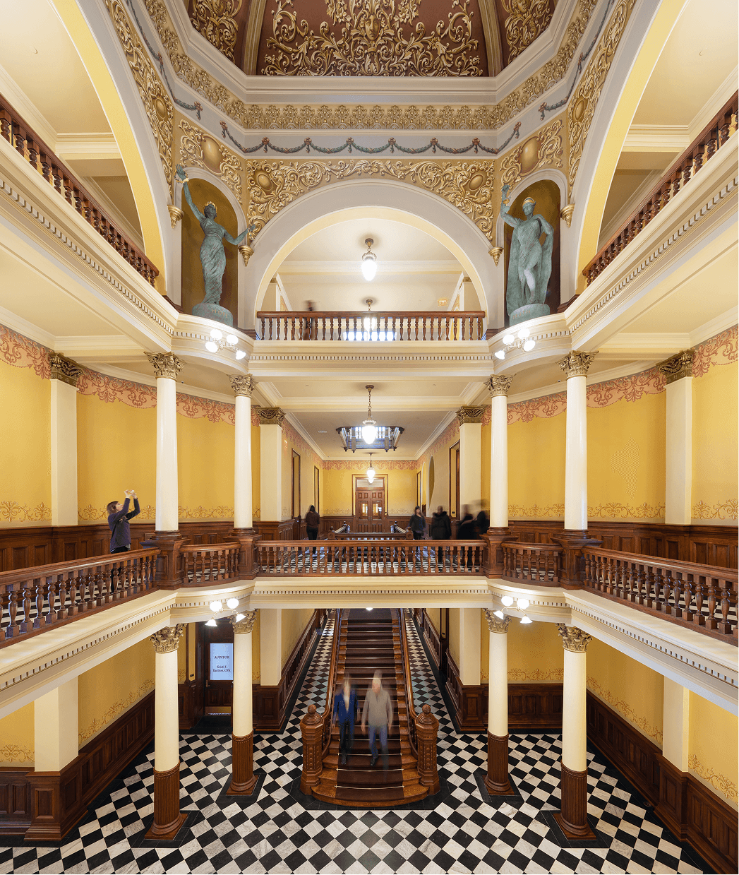 This multi-phase restoration revitalized the Wyoming State Capitol—an iconic National Historic Landmark—along with major upgrades to surrounding government facilities within the Capitol Square campus. The project restored the Capitol’s original architectural character while integrating modern building systems, accessibility improvements, and expanded public spaces to support contemporary legislative operations. Intricate plaster restoration, refined interior finishes, and carefully coordinated wall and ceiling assemblies were essential to preserving historic integrity while meeting current performance standards.